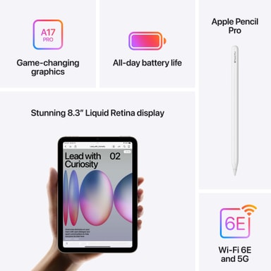 iPad mini har lynhurtig ydeevne med A17 Pro-chippen, inspirerer til uendelig kreativitet med Apple Pencil Pro Se ansvarsfraskrivelser og fås i fire smukke farver.