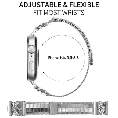 Sikker og behagelig pasform: Denne rem er designet med præcision og sikrer en sikker og behagelig pasform på dit håndled. De glatte led i rustfrit stål glider ubesværet for en personlig pasform, mens den robuste lås holder dit ur sikkert på plads under enhver aktivitet.