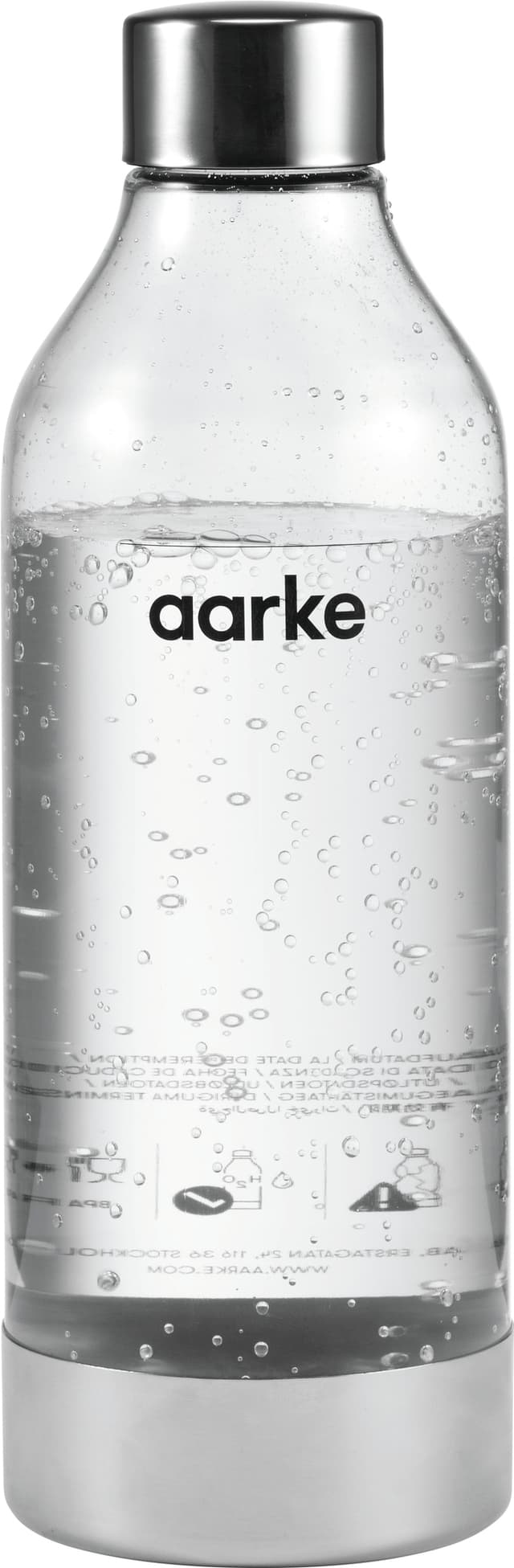 Drik vand med brus fra denne Aarke PET Polished Steel flaske til sodavandsmaskine AA354007, en 1-liters PET-flaske til vand med brus. Flasken har en flot poleret stålfinish, der matcher din Aarke sodavandsmaskine.