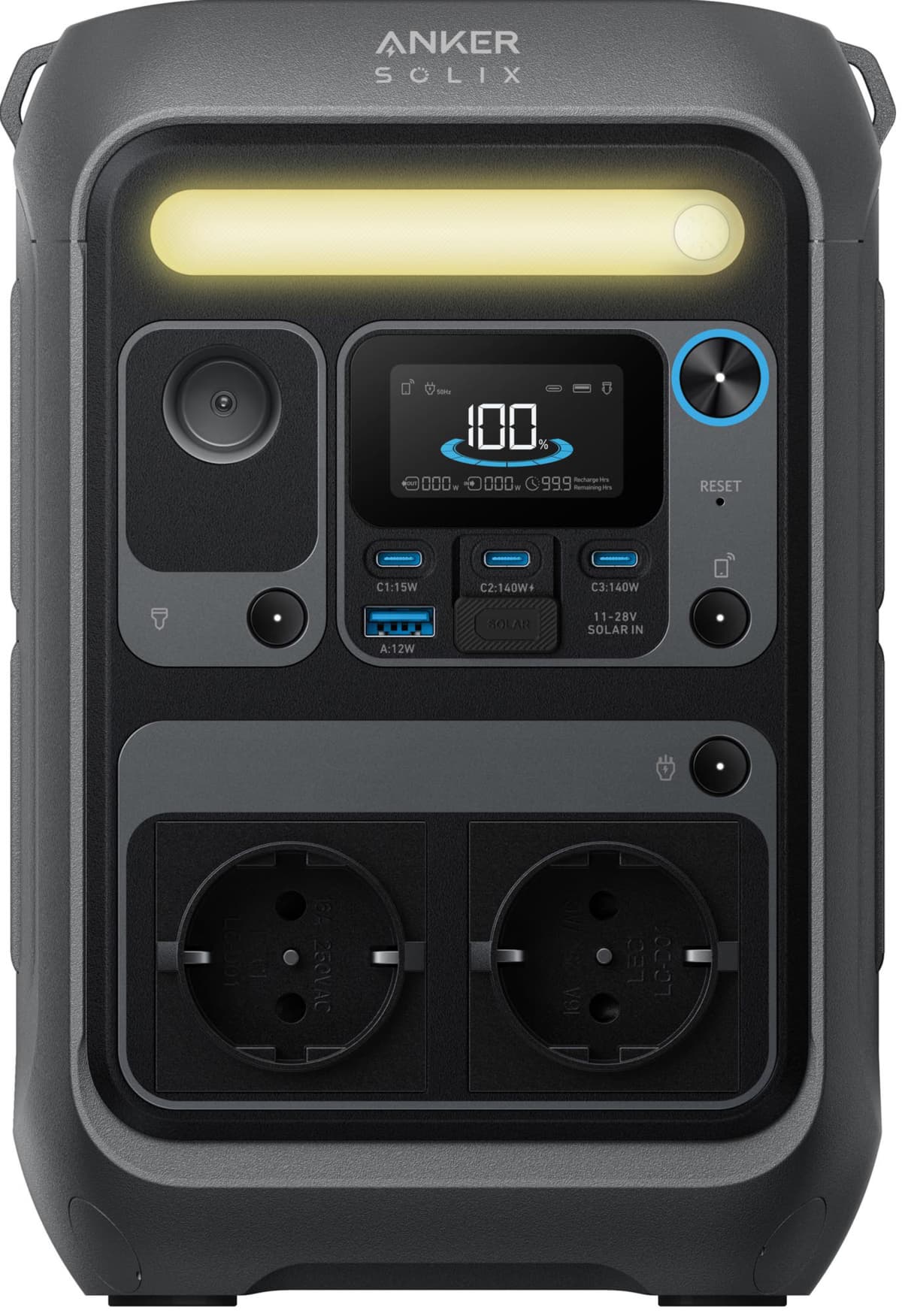Nyd en problemfri strømforsyning med Anker Solix C300x 288 Wh bærbar kraftstation. Med et LiFePo4-batteri, kapacitet på 288Wh og 600W udgangseffekt kan denne bærbare kraftstation oplade op til 7 enheder.Læs mere om produktet