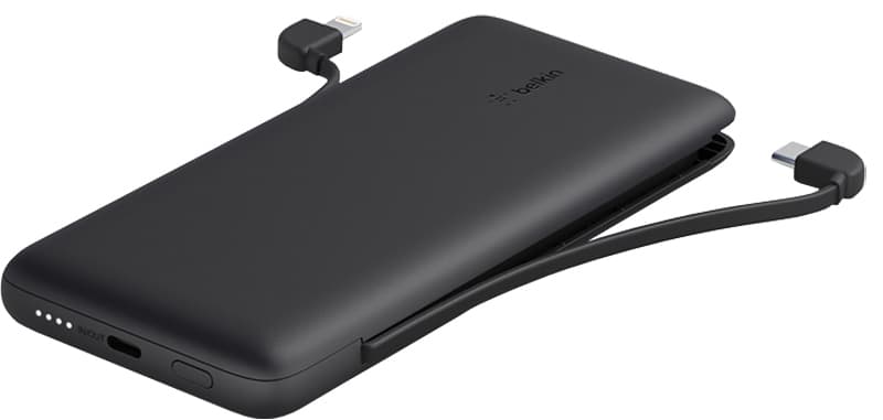 Belkin BoostCharge Plus 10K powerbanken og dens indbyggede sæt af USB-C og Lightning-opladningskabler oplader din telefon komfortabelt. Oplad 2 enheder ad gangen med hastigheder på 23W i alt og tjek batteriniveauet på LED-statuslyset.Læs mere om produktet