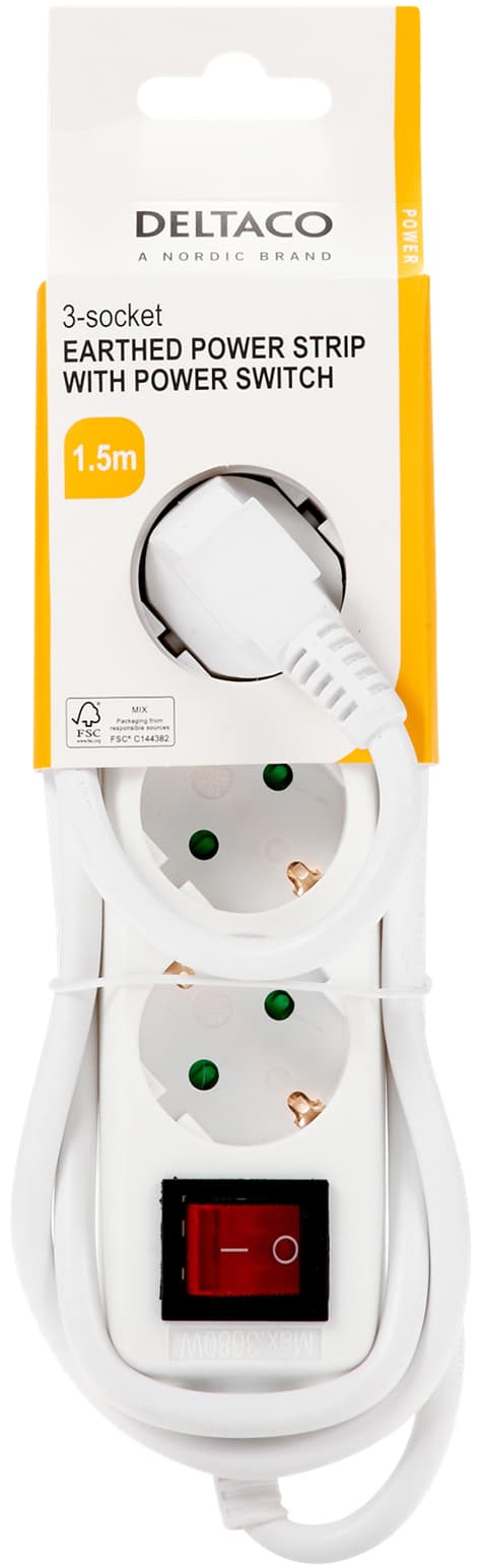 Deltaco stikkontakten GT-0350 har en rund 1,5 meter forlængerledning, som ender i 3 CEE-stikkontakter. De er børnesikrede og jordforbundne, for ekstra sikkerhed og bekvemmelighed.