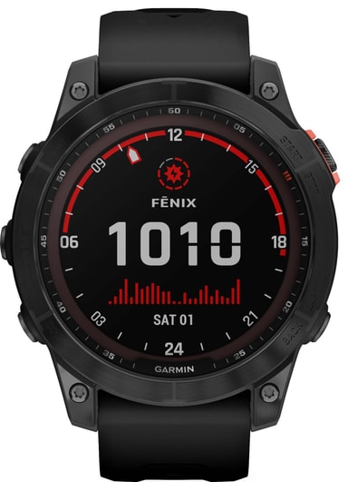 Dette Garmin Fenix 7 Solar har smarte funktioner som realtids-udholdenhedsmåler, Garmin Pay kontaktløs betaling og 24/7 helbredsmonitorering. Se notifikationer fra din smartphone på urets 1,3" skærm, dækket af en forstærket glaslinse.Læs mere om produktet