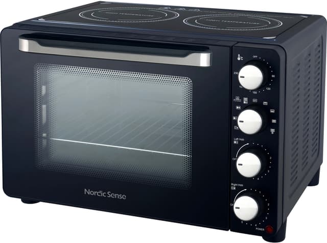 Nordic Sense bordkomfur 36512 med keramiske kogeplader er et smart og alsidigt apparat med en ovnkapacitet på 28 liter. Perfekt til mindre køkkener eller som en praktisk ekstra tilberedningsenhed, hvor du kan grille, stege, bage, fritere og koge - alt sammen på minimal bordplads. Med en samlet effekt på 2.940W leverer den effektiv ydeevne i et kompakt design.
