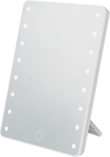 Løft din skønhedsrutine med North skønhedsspejl 205106. Det har 16 lyse LED-pærer, en intuitiv touch-kontrol og drives af 4 AAA-batterier, hvilket gør det perfekt til skønhed på farten.Læs mere om produktet