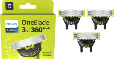 Få din OneBlade eller OneBlade Pro barbermaskine til at fungere optimalt igen, og nyd en ren barbering af top standard med Philips OneBlade 360-barberbladene QP430/50 og deres evne til at bevæge sig i alle retninger. Indeholder 3 blade.Læs mere om produktet