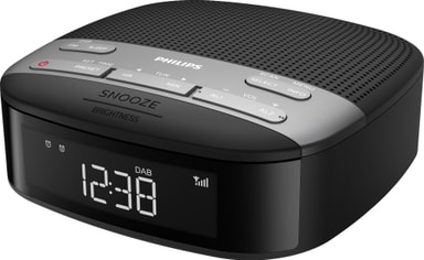 Philips TAR3505/10 radioen med integreret alarmur kan vække dig med din favoritradiostation eller en summende alarm. Du kan også snooze alarmen.