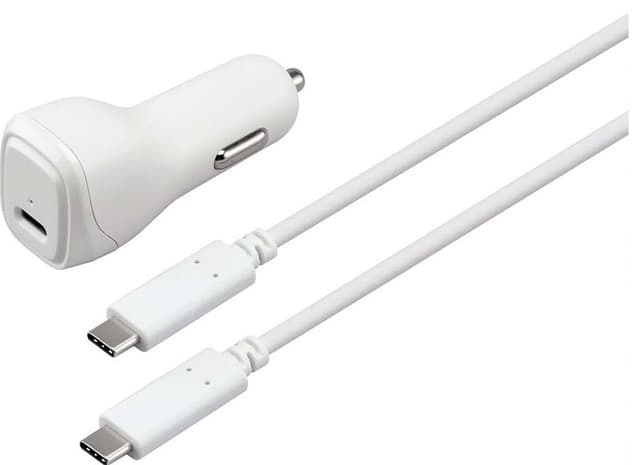 • Sandstrøm USB-C-til-USB-C-biloplader (hvid)