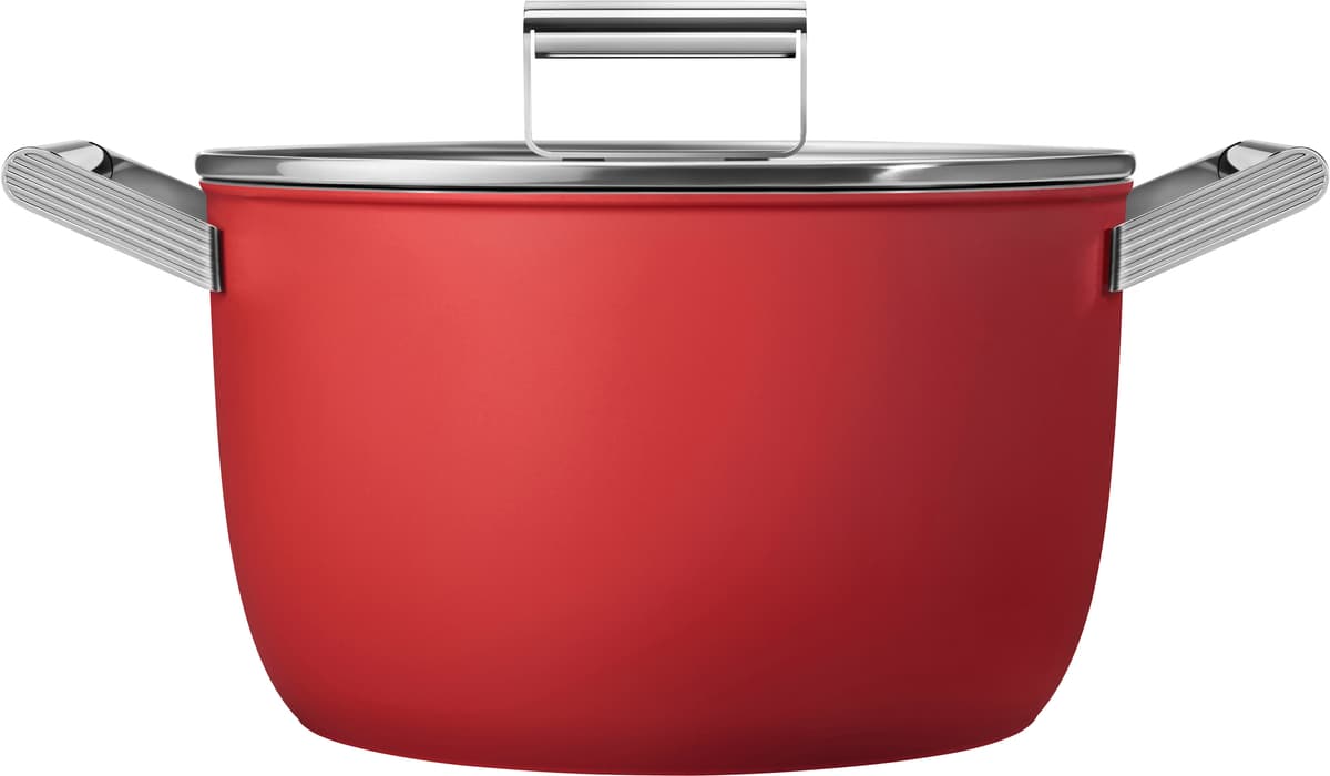 Lav mad uden bekymringer med denne Smeg 50’s Style kasserolle REDCAS26 takket være bunden af rustfrit stål, den holdbare udformning af aluminium og PTFE ikke-klæbebelægningen. Kasserollen kan rengøres i opvaskemaskinen og er velegnet til induktion.Læs mere om produktet