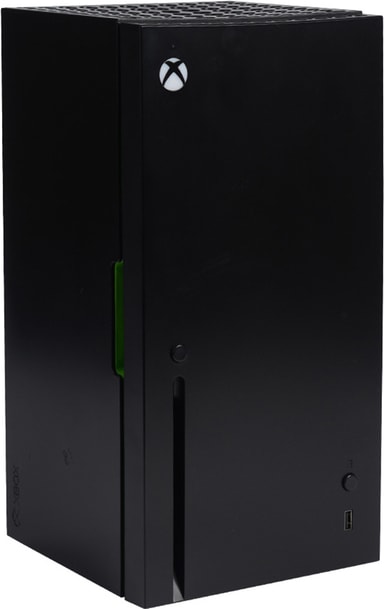 Minikøleskabet har et elegant, autentisk design, der afspejler den ikoniske Xbox Series X-konsol. Dets matsorte finish, skarpe kanter og karakteristiske grønne accenter gør det til et ideelt midtpunkt i ethvert gaming-setup.