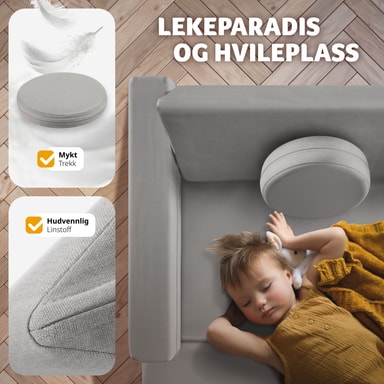 Børnesofaen med sovefunktion imponerer ikke kun med sine alsidige anvendelsesmuligheder, men også med den høje komfort. Den behagelige polstring består af en høj densitet skumfyldning, der sikrer en behagelig sidde- og liggeoplevelse. Uanset om det er som sovesofa i børneværelset eller som legesofa til eventyrlige byggeprojekter – Lilly tilbyder maksimal komfort ved enhver brug.