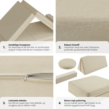 Børnesofaen Lilly er mere end bare en sofa – det er et kreativt legemøbel, der er perfekt til at bygge, tumle og slappe af. De modulære elementer kan altid arrangeres på ny og giver dit barn utallige muligheder for at skabe sine egne legeverdener. Uanset om det er som gymnastiksofa, mini-sofa eller sovesofa – Lilly tilbyder ubegrænset sjov og fremmer fantasien.