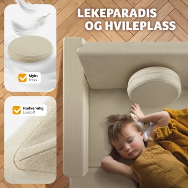 Børnesofaen med sovefunktion imponerer ikke kun med sine alsidige anvendelsesmuligheder, men også med den høje komfort. Den behagelige polstring består af en høj densitet skumfyldning, der sikrer en behagelig sidde- og liggeoplevelse. Uanset om det er som sovesofa i børneværelset eller som legesofa til eventyrlige byggeprojekter – Lilly tilbyder maksimal komfort ved enhver brug.