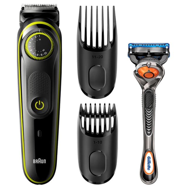 Braun skægtrimmersættet BRABT3041 hjælper dig med at pleje dit skæg. Det inkluderer 2 kamme med i alt 39 længdeindstillinger, en trimmer med skarpe skær hele dens levetid samt en Gillette Fusion ProGlide skraber med FlexBall-teknologi. Trimmeren kan renses under vand og fungerer kabelfrit, så vedligeholdelsen er simpel, og du kan nyde alle trimmerens muligheder fuldt ud.