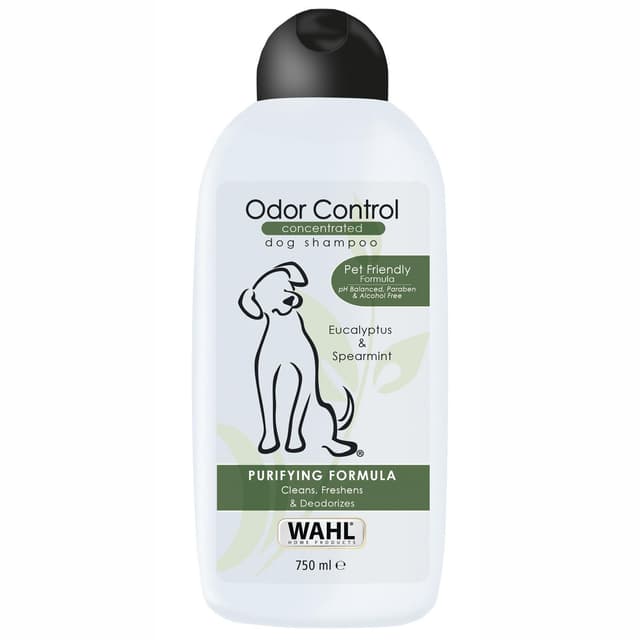 Renser og neutraliserer dårlig lugt. Lavet af naturlige ingredienser fri for Parbener og PEG-80. Lugtbekæmpelse indeholder eukalyptus og mynte, som dybt renser og giver din hund en vidunderlig duft, mens den fugter huden.