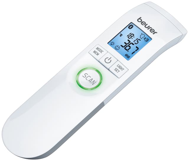 Det kontaktløse Beurer termometer FT 95 kan måle din temperatur komfortabelt, hurtigt og med upåklagelig præcision. Det er udstyret med infrarød måleteknologi, en hukommelse med 60 pladser, baggrundsbelyst skærm og smartphone-forbindelse via Bluetooth.Læs mere om produktet