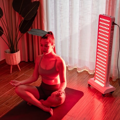 RLT by TrendRehab er en rødlyslampe med 300 LED-lys, dobbelte bølgelængder og 5 blæsere. Rødlysterapi, også kaldet fotobiomodulation, har været undersøgt siden 1960’erne og kan bidrage til smertelindring, hurtigere heling, bedre restitution, øget kollagen- og elastinproduktion, forbedret hudkvalitet samt bedre iltning af væv.