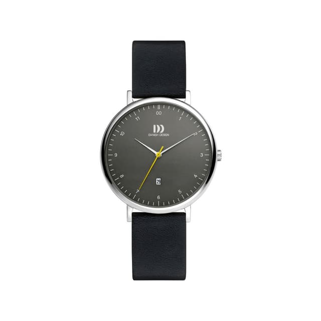 Dette smukke og klassiske ur fra danish design er den perfekte følgesvend til enhver lejlighed. Uret er lavet med en kasse i rustfrit stål med grå skive, datodisplay, mineral krystal glas og en sort rem i læder.