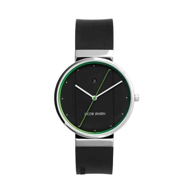 Designet af jacob jensen new series er blevet revideret tre gange siden udgivelsen i 1995, hvilket resulterede i nogle subtile, men betydelige ændringer i designet. Indersiden af uret har en lodret faldet rille, der udstråler sin tredimensionelle kvalitet. Det forstærker illusionen af remmen, der strømmer sømløst rundt om urets ansigt.