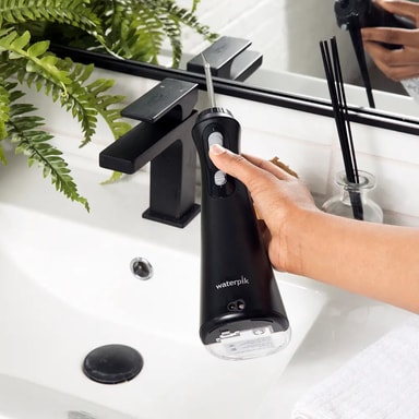 Waterpik Cordless Plus – kompakt mundskyller med 360° roterende mundstykkeLæs mere om produktet