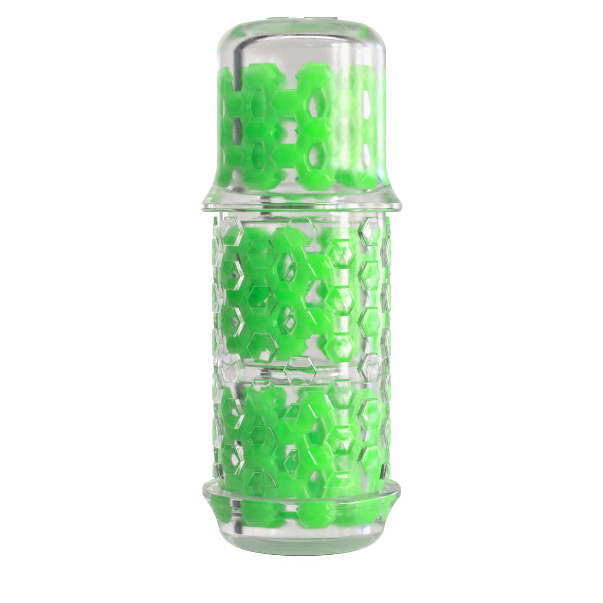 Mod Long Sleeve anvender topmoderne dobbelt-injektionsteknologi. Det bløde ydre lag giver behagelig hudkontakt og fleksibilitet, mens den fastere indre kerne bevarer strukturel integritet og ensartet indre diameter i hele den 165 mm lange sleeve. Denne tekniske tilgang sikrer, at formen og ydeevnen opretholdes gennem utallige sessioner. Anvend vandbaseret glidecreme for optimal komfort.