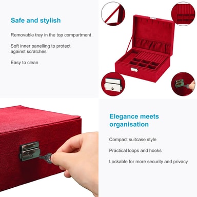 Højkvalitets smykkeskrin. Ultralet og blødt materiale. Med aftagelig bakke i 2-lags design.Læs mere om produktet