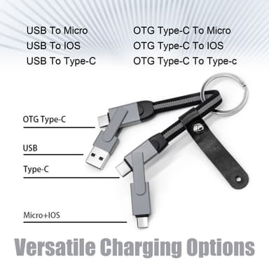 6-i-1 hurtigopladningsnøgleringkabel er din ultimative løsning til bekvem opladning og dataoverførsel. Det kompakte nøgleringdesign giver mulighed for nem transport, så du altid kan have en opladningsløsning ved hånden.Læs mere om produktet