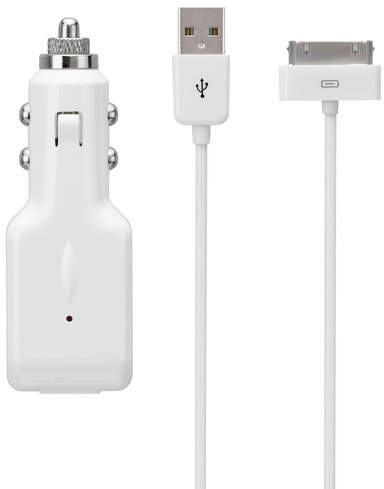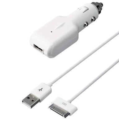 Hvid biloplader til din iPhone, iPod eller iPad med 30-bens stik.Læs mere om produktet
