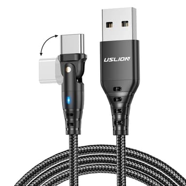 • USB-A til USB-C opladningskabel 1m 180 graders roterende vinklet hoved 3A