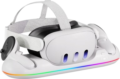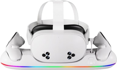 Hold din Meta Quest 3/3S opladt og klar med ViMe ladestationen. Den oplader dit headset og controllers sammen i ét praktisk setup, mens blød RGB-belysning tilføjer et stilfuldt touch til dit rum.Læs mere om produktet