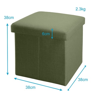 Materiale: robust dekorativt pap + stof Størrelse: 38 cm x 38 cm x 38 cm Belastningskapacitet: op til 80 kg