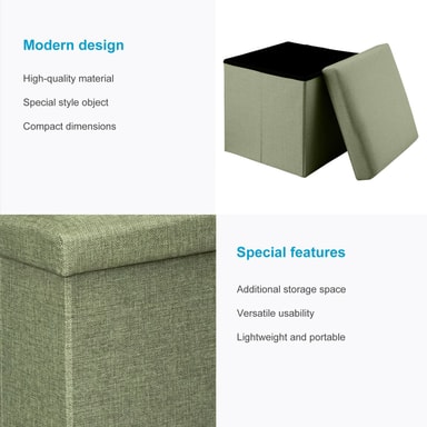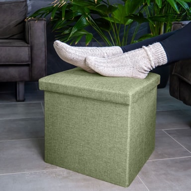 DESIGN: Det moderne og individuelle design i hørstof på ydersiden og blødt stof på indersiden af denne praktiske foldekasse/skammel får den til at se meget stilfuld ud og vil med garanti være et blikfang!