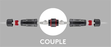 • Kabeltilslutning til udendørs og industrielle anvendelser med beskyttelse mod snavs og fugt (beskyttelsesklasse IP68).