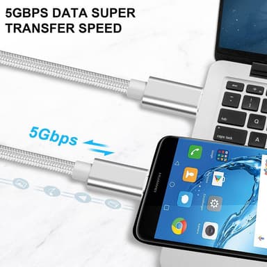 NÖRDIC 1m USB C 3.1 til USB C Nylon Flettet Kabel Hurtig opladning 3A Gen1 5Gbps Power Delivery PD 60W HvidLæs mere om produktet