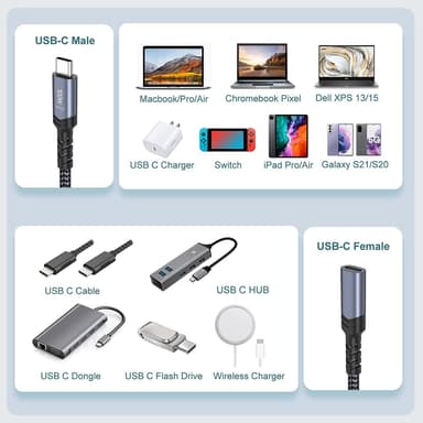 NÖRDIC 1m USB3.2 Gen2 USB-C forlængerkabel han til hun 10Gbps 5A 100W Thunderbolt3