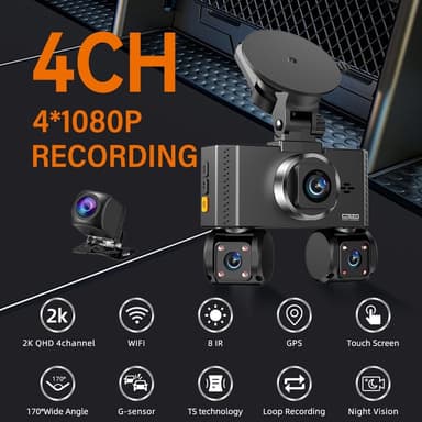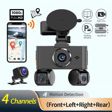 W3 WiFi 4-kanals dashcam 2K nattesyn fire-linse bil-DVR køreoptager med GPS-modul + step-down kabel【Fire-kanals optagelse】Optag omfattende optagelser med frontkamera og bagkamera, venstre og højre kamera for fuld dækning.【Avanceret nattesyn】UdstyretLæs mere om produktet