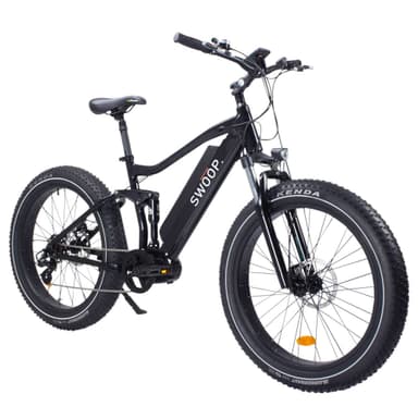 Præsenterer Swoop Fatbike Ranger, en premium kvalitet og alsidig elektrisk cykel designet til udfordrende off-road forhold, vintervejr, pendling og fritidscykling, med top-of-the-range komponenter og et holdbart genopladeligt batteri.Læs mere om produktet