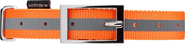 Minifinder hundehalsbåndet er lavet af slidstærkt, vævet nylonmateriale, der kan klare varmen om sommeren og kulden om vinteren. Den klare organge farve samt de reflekterende striber sikrer, at dit kæledyr kan ses, selv i mørket. Halsbåndet har en slidstærk metalspænde og en D-ring, der er perfekt til fastgøring af Atto Trackeren. Desuden kan du let tilpasse halsbåndets længde.