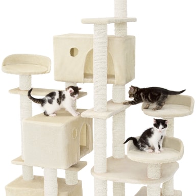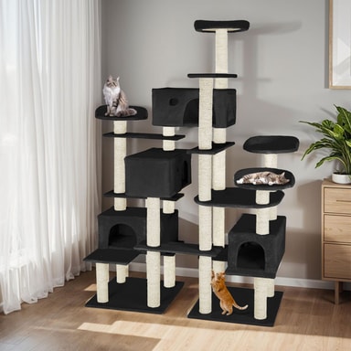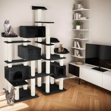 Med dette alsidige kradsetræ fra tectake kan din kat få opfyldt alle sine ønsker. Dette funktionelle kattetræ giver dine firbenede kære utallige muligheder for leg, afslapning og klatreudfordringer. De mange sisalstolper er ideelle til at hvæsse kløer og hjælpe med at holde dem i topform.
