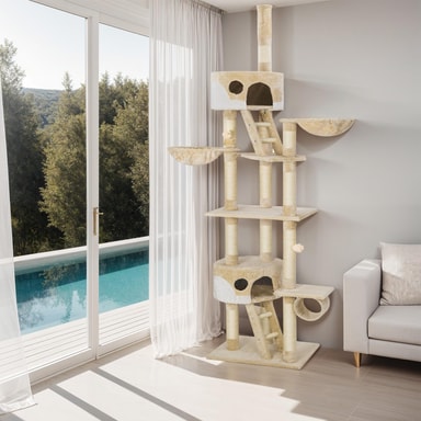 Giv din kat et hjem fyldt med komfort, sjov og sikkerhed med vores fremragende kattetræ. Det er det perfekte tilbehør til enhver katteejers hjem, der ønsker det bedste for deres kat.