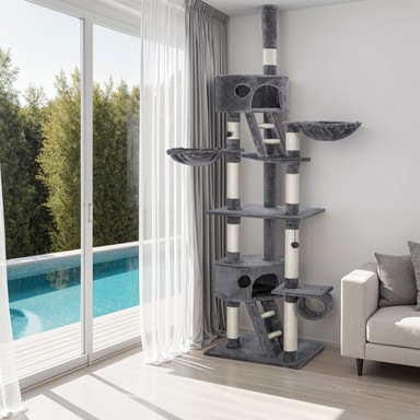 Giv din kat et hjem fyldt med komfort, sjov og sikkerhed med vores fremragende kattetræ. Det er det perfekte tilbehør til enhver katteejers hjem, der ønsker det bedste for deres kat.