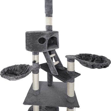 Med tre udsigtsplatforme kan din kat nyde udsigten fra forskellige højder. Derudover er der to komfortable liggepladser, der er belagt med blødt plys. Disse liggepladser er perfekte til katte, der elsker at rulle sig sammen og slappe af i en behagelig og tryg atmosfære.