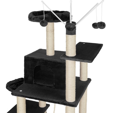 Kradsetræet er designet i flere niveauer og har et væld af spændende elementer, som katte vil elske. Legereb, hængekøjer, liggekurve og et hyggeligt kattehus giver din kat utallige muligheder for at boltre sig, hygge sig og finde ro.
