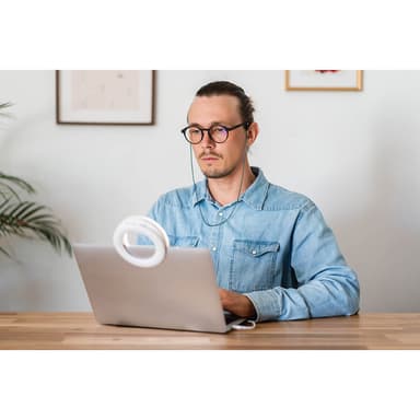 LED Ring Light Mini 4""4-tommer/10 cm diameter ringlys40 individuelle lysdioderJusterbar farvebalance 3500K - 5500KJusterbar lysstyrke (3 trin)Integreret genopladeligt 350 mAh batteri1,5 time batteritid<p>Det har aldrig været lettere at se godt ud...Læs mere om produktet