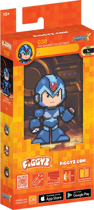 First 4 Figures Figgyz Mega Man Pop magnet actionfiguren har en vendbar metalplade med to forskellige displaymuligheder, pixel-art-stil karakter, en 3D-magnetisk pop-out-effekt, en displayfod og et magnetisk klistermærke.Læs mere om produktet