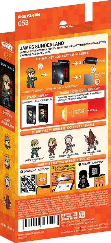 First 4 Figures Figgyz Silent Hill 2 Pop Magnet actionfiguren har en vendbar metalplade med to forskellige udstillingsmuligheder, en pixel-art-stil figur, en 3D magnetisk pop-out effekt, en displayfod og en magnetisk sticker.Læs mere om produktet