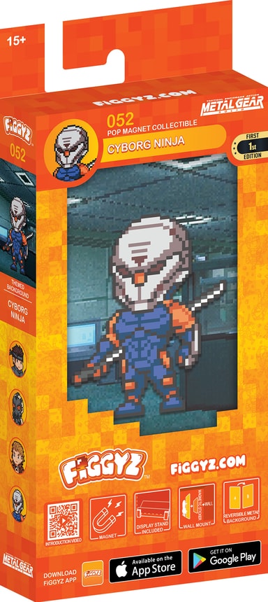 Her er First 4 Figures magnetiske actionfiguren af Cyborg Ninja, en cybernisk forbedret kriger. Den har en 3D pop-out pixel-art effekt med MagMounts og inkluderer en hyldesokkel og magnetisk klistermærke til fleksibel, vendbar udstilling.Læs mere om produktet