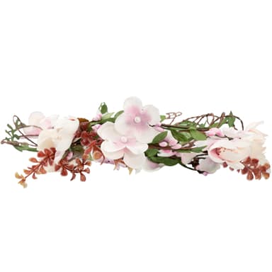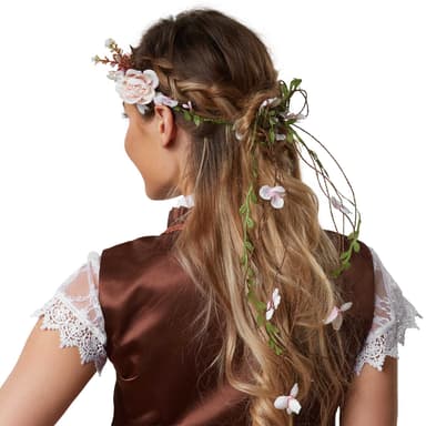 Den fornemme blomsterkrans, englykke, er et blikfang til mange lejligheder. Den stilfulde hovedpynt fungerer overbevisende med sin naturlighed og med stor kærlighed til detaljen. Takket være satinbåndene kan størrelsen tilpasses individuelt. Den flotte blomsterkrans englykke iscenesætter din påklædning, materiale: Plast, stof.