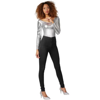 Tætsiddende og super flot: Body i metallisk look er førstevalget til et attraktivt look, både til karneval, ballet eller på diskoteket. Med sin glinsende overflade og flotte design tiltrækker den langærmede heldragt sig mange blikke. Takket være det elastiske materiale er det stramtsiddende stykke tøj meget behageligt at have på, materiale: 100 % elastan.