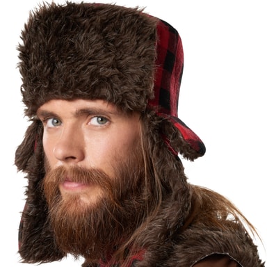 Herrekostumet, Bonderøv, består af et ærmeløst, rygfrit, ternet gevandt af fast stof. Hæle i fløjl er påsyet forneden på bukserne. På kraven er der anbragt en velcrolukning. Dertil hører en langærmet frakke af kunstlæder og en fake pelskrave.Læs mere om produktet